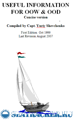 Year: 2007 Язык: английский Author: Capt. Yuriy Shevchenko Format: DOC,XLS,JPG,etc The objective of this USEFULL INFORMATION FOR OOW & OOD Book is to summarize and systemize all data for Bulkcarrier’s practice including all aspects of every day activities. It includes such topics as Classic Navigation & Celestial Astronavigation; COLREG; Bulk carrier handling; Bulk carrier Practice, including Bulcarrier’s construction, routine job for technical maintenance of hatch cover; Stability & Stresses, Electronic Navigation; compliance with International Conventions Requirements; Meteorology & Oceanography; Various Training Courses; Commercial Aspects; Safety, LSA & FFE; Technical & Maintenance; Cargo Transportation, especially coal in bulk. Author did not repeated the fundamental and basic nautical knowledge, he tried to advise the updated information only. Author will, however, also prove useful as a ready and handy reference to the many every day activities which both the Ship’s Officer and Master will encounter during the course of his career. The attempt has been made in this book to approach subject of every day Ship’s Officer activities from the basic principles of Navigation and Ship’s Handling and their resolution, and care has been taken to demonstrate the derivation of the many formulae used. It is hoped that this method, combined with many worked examples covering a wide variety of problems, will lead the Navigator to a clearer and deeper understanding of this subject to many worked examples covering daily Bulk carrier Practice. This USEFULL INFORMATION FOR OOW & OOD Book will be useful not only for beginning Navigators, but for both Experienced Ones and who wants to improve his Navigator’s Experience.