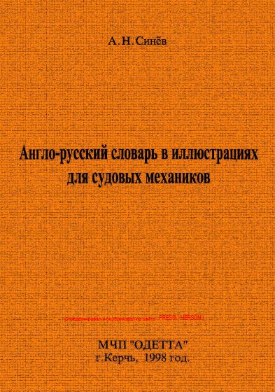 Описание: Англо-русский словарь в иллюстрациях для судовых механиков содержит около 3000 терминов и терминологических сочетаний по следующим разделам морской техники: