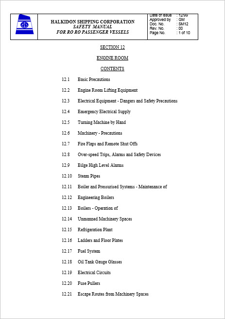 Halkidon shipping corporation safety manual for RO-RO passenger vessels