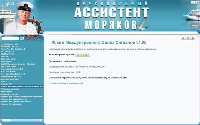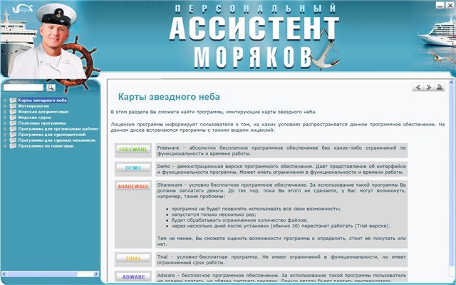 Содержит множество программ для судоводителей и механиков, которые можно открыть или установить.
