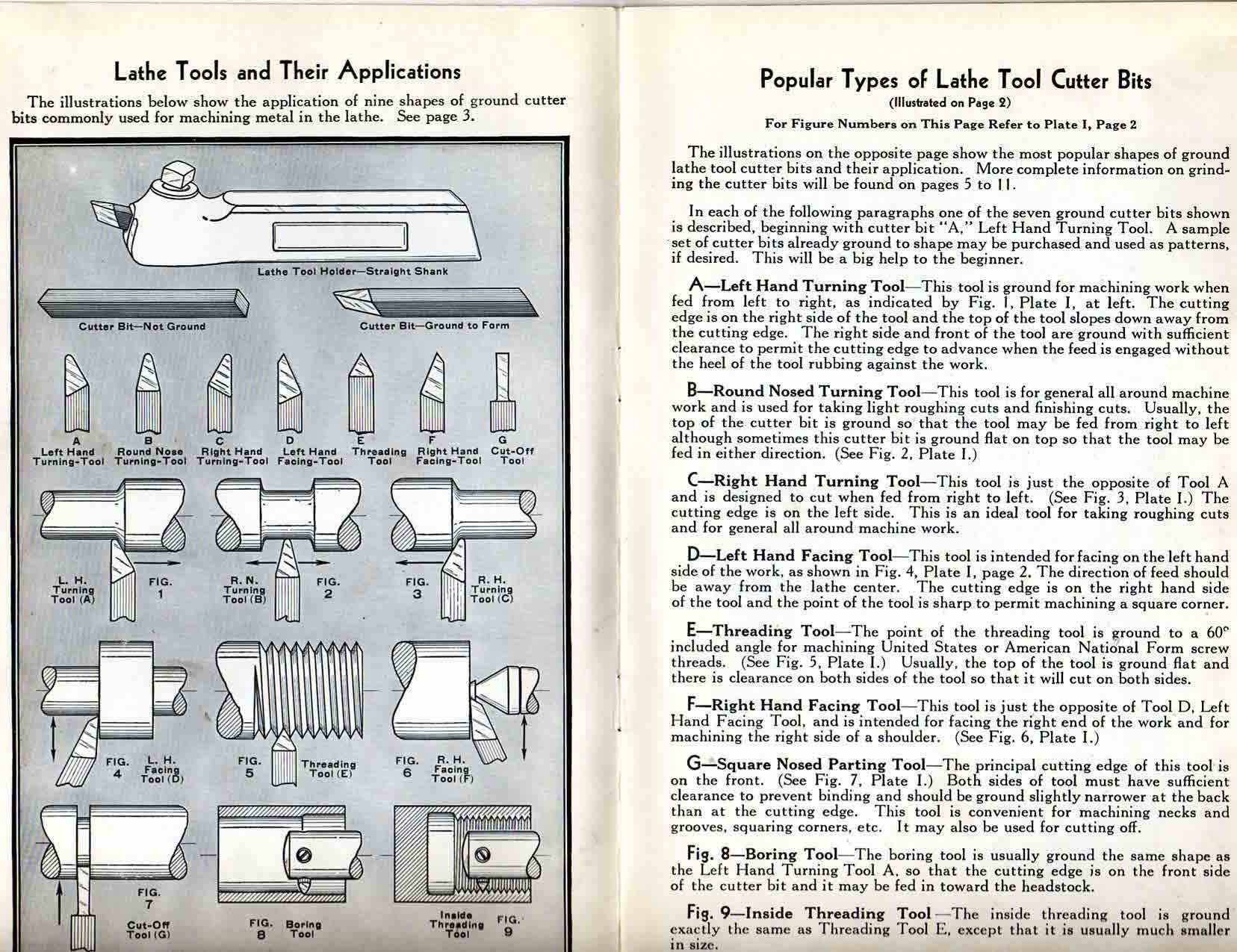 In this booklet the latest shop practice for grinding various types of lathe tool cutter bits is outlined. The methods shown are used in our own shop, where we operate 150 Back-Geared, Screw Cutting Lathes on all kinds of machine work.